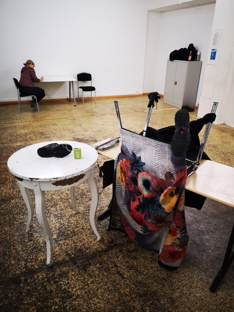 Martin also invited me to create a piece of art, a sculpture just with the furniture in the room and my own stuff. Without thinking, I assembled what was there and together we marvelled at the sculpture I had created and interpreted it, fining that this could resemble my past, present and future. I felt reminded of the tarot cards where you’re presented with an image to spark your thinking around what that could mean for you. In the side we dubbed the present situation, my handbag represented me, hanging around on centre stage, looking a bit helpless. Upon opening it to see if there are any hints on the resources I have and the first item I could touch without even looking was chimpy, a power bank that you can rent against a small fee at any kiosk in Switzerland.