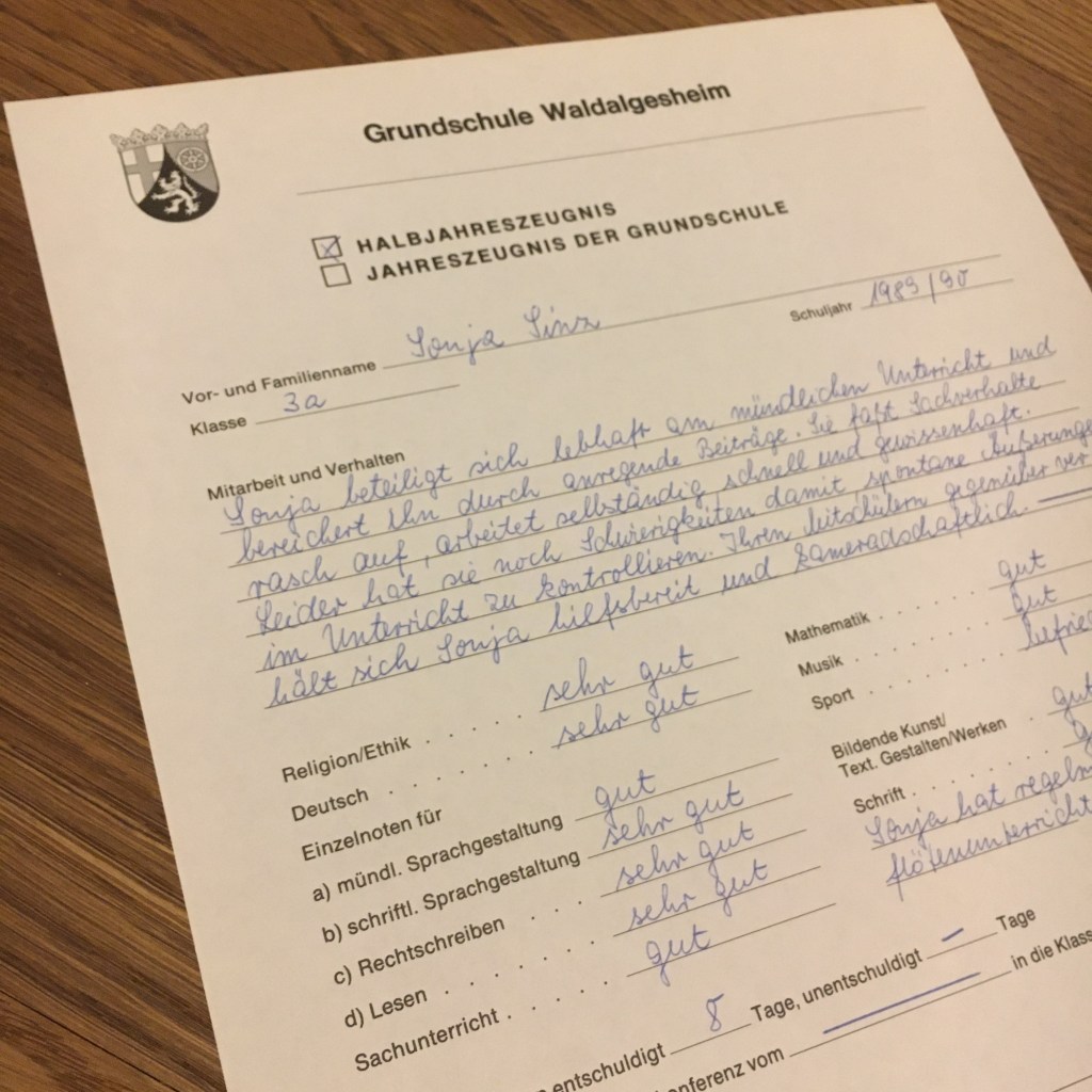 This “exercise” made me smile big time. While cleaning up I came across a folder with old reports from elementary school. In the first couple of grades, at least in Germany, where and when I went to school, we got a couple of lines of prose as a feedback every 6 months. And while going through them with my husband, we found that these short lines were so telling and so fitting to some of my behaviour patterns and tendencies; I was very touched. There were sentences like “Sonja loves to take on responsibility”, “She needs to respect the conversation rules of the classroom,” (very bubbly :-)) “Sonja has a wild imagination”, “She often finishes exercises early and then invents own follow-up exercises for herself.”
