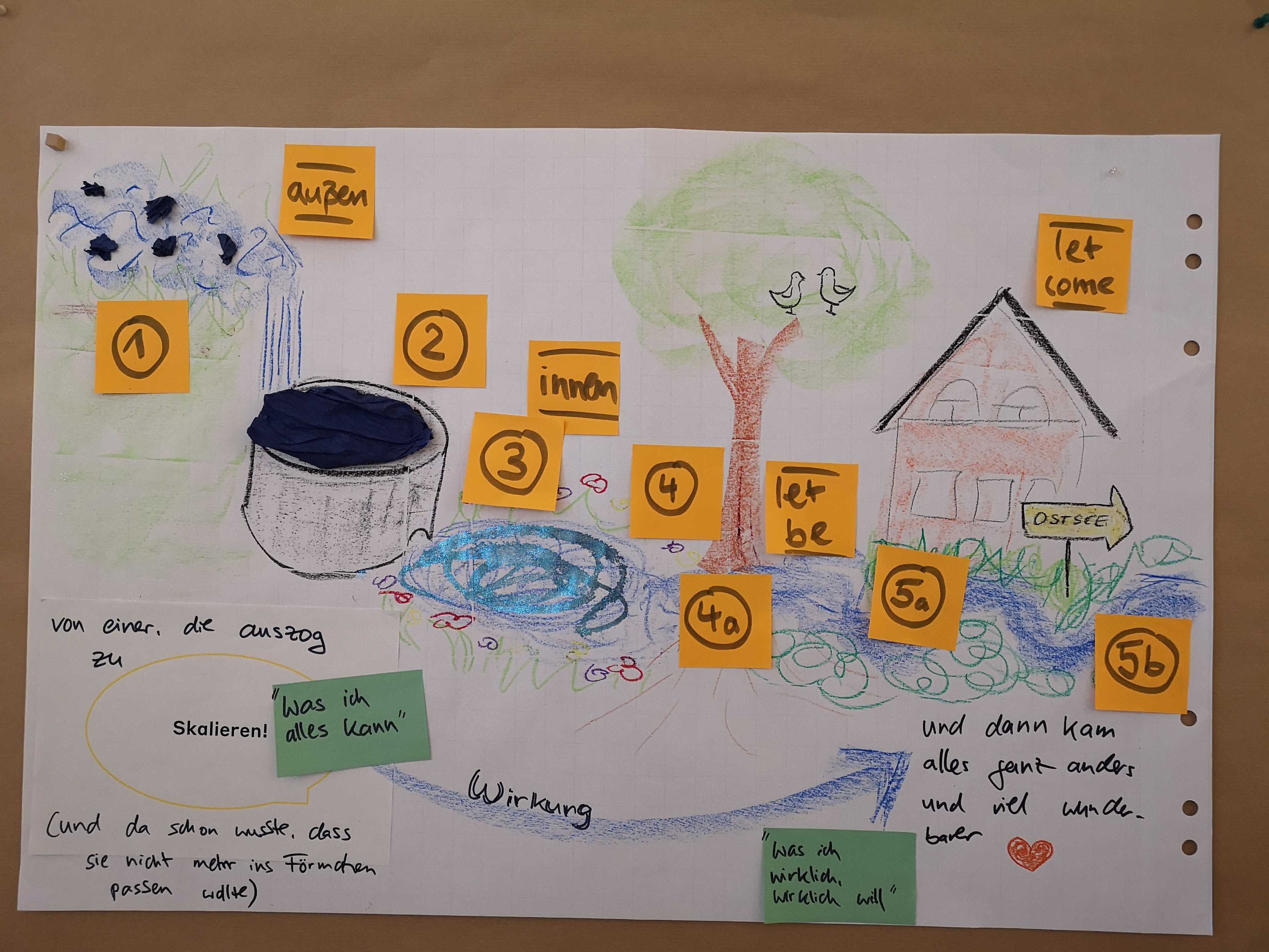 Last weekend was special because for the first time in what feels like ages I was able to meet my buddies and classmates at LES ENFANTS TERRIBLES in Berlin again face to face. We gathered to officially conclude the education program that was supposed to end in March already but that was postponed due to the pandemic. Thanks to the perseverance of our amazing facilitators, we got treated to a couple of extra months during which we met virtually every four weeks until it was possibe to be in the same room again. The whole journey covered 16.5 months. In the fifth and final module, we reflected on our individual development, we exchanged personal highlights, we enjoyed a rythm lesson, we meditated, we wrote letters to each other and our future selves. There was joy and yes, there were tears, too. We agreed that the story shall not end here, so this weekend was just the end of one sequence. We are planning to continue with a self-organised module six in a couple of months and will add more modules on, until we feel we’ve had enough.