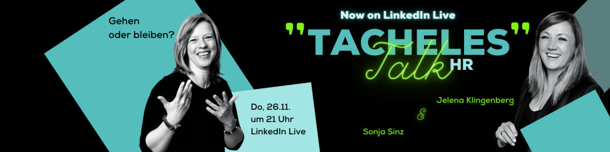 Ich teile gern hier mit euch ein paar meiner Gedanken zu den Themen, die ich am 26.11.2020 mit Jelena im Tacheles Talk in einer Linkedin Live Session diskutieren durfte. Ein Replay des Gesprächs mit Jelena, mir und spontanen Überaschungsgästen findet ihr hier: