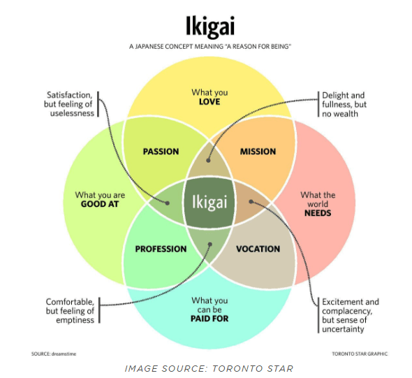 I have grown into my work and the work I do has evolved over time. There is no one “right way of doing” this type of work and that’s what I love about it. I can bring in my intuition, my personality, my knowledge, my curiosity, and experience. I can experiment and play– all in service of the people I work with. I don’t have to prove anything or guarantee anything – it’s all about them. I create and hold generative spaces in which things can happen. So, is this my Ikigai – the sweet spot where talent and passion overlaps with purpose and profession? Yes, it might be. Or it might be a steppingstone towards something else. And: does that matter?