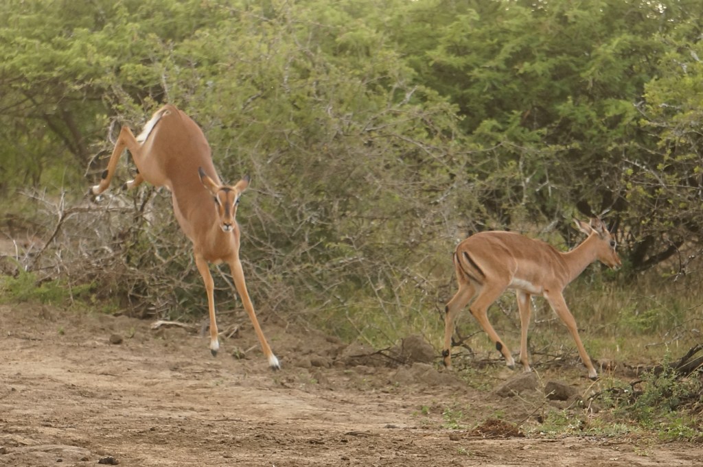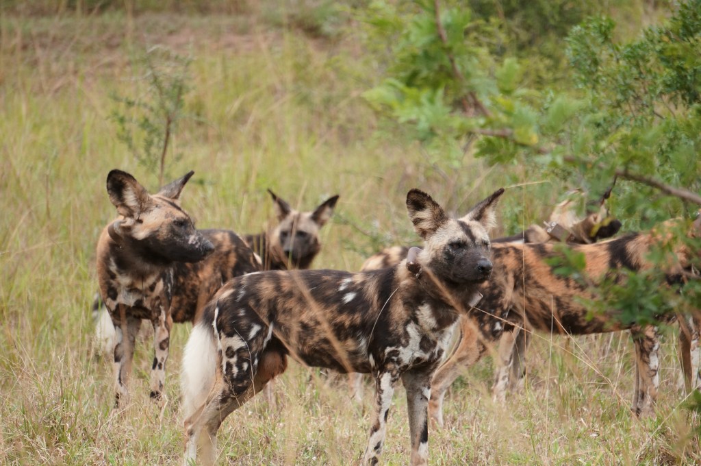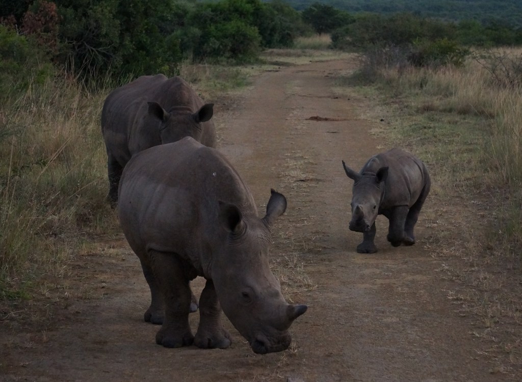 We also learned that wild dogs are an endangered species partly because their hunting technique is very dangerous – they do not kill their prey before they start eating it. Instead, they tuck right in on the run, which often results in receiving kicks in the face. Ouch! We learned about how temporary coalitions of animals form, for instance we saw two rhino mothers with their young ones or a group of male elephant bachelors acting out their testosterone on the hillside right by the lodge. They even cut off the water supply one night. We were told this happens all the time as the elephants feel the vibrations of water running through the pipes under their feet and then start digging to benefit from the precious fluid.