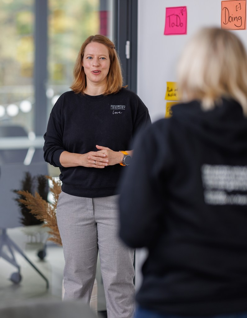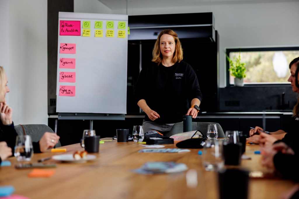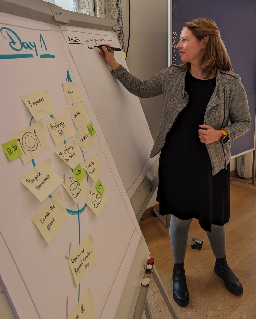 - Facilitation: I planned and facilitated workshops with teams onsite in Brunswick, Frankfurt, Geneva, Berlin and many times online. One of the challenges and at the same time a source of excitement and joy in my work is variety. I get to immerse into completely different contexts and dynamics: From the leadership team of an international tech scale-up to hands-on production and warehouse workers. From a bubbly marketing team in the healthcare sector to a seasoned leadership crew in banking/finance to a team that provides personnel services. There is no one-size fits all in how I work, although some needs and patterns are universal.